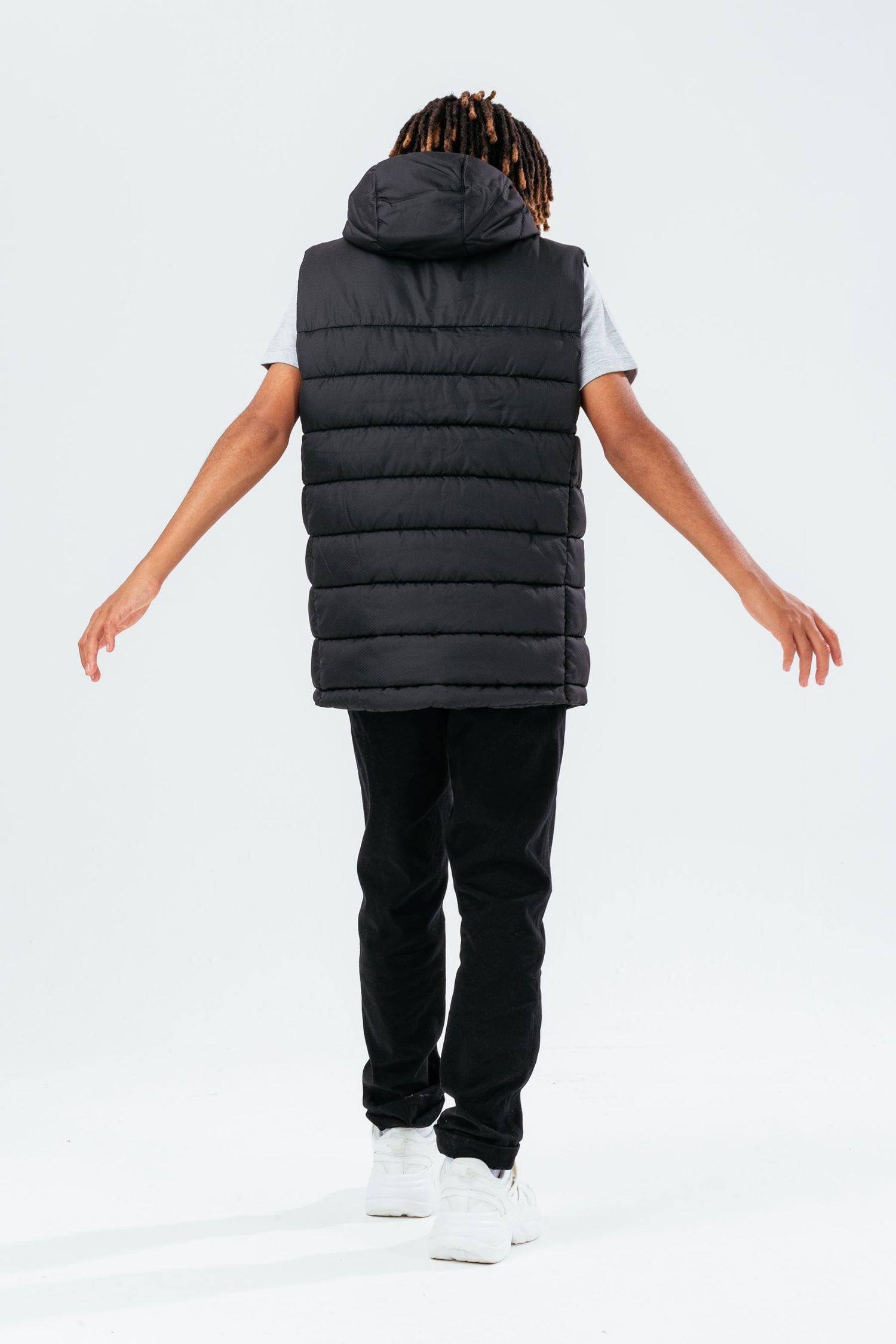 Don't just keep warm and cosy in these colder months, do it with style with the HYPE. Black Blue Kids Gilet. Designed in our standard gilet shape, complete with a fixed hood, zip, and and mini HYPE. script logo. Machine wash at 30°C.