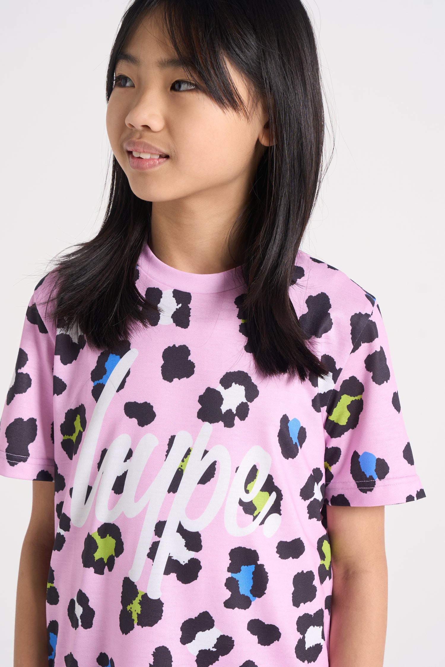 Show off your wild side with this Hype Girls Lilac Leopard T-Shirt & Shorts set, with a leopard print design and matching pink shorts. Covered in an all‑over lilac leopard pattern with pops of blue, green, and black, this T‑shirt gives you a fierce, fun look that stands out wherever you go.